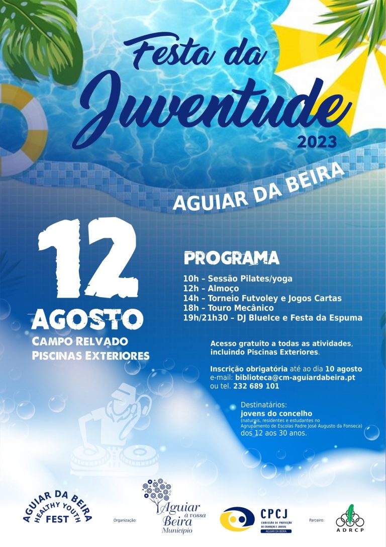 O Município de Aguiar da Beira vai assinalar o Dia Internacional da Juventude, a 12 de agosto, com a Festa da Juventude, no campo relvado das piscinas exteriores. A iniciativa destina-se a jovens entre os 12 e 30 anos naturais e residentes no concelho e estudantes no Agrupamento de Escolas Padre José Augusto da Fonseca.
