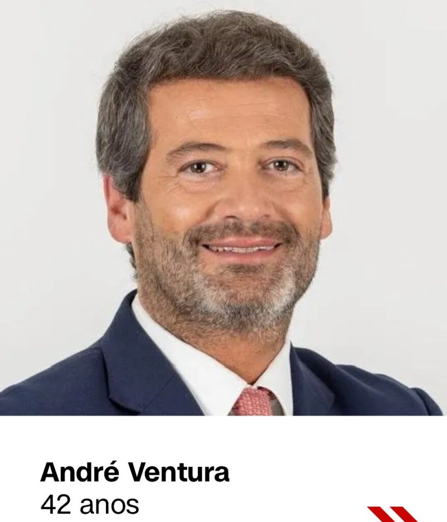 Descrição: Líder do partido Chega, conhecido por posições fortes em segurança, imigração e crítica ao “sistema”. O seu discurso tende para políticas conservadoras e populistas.