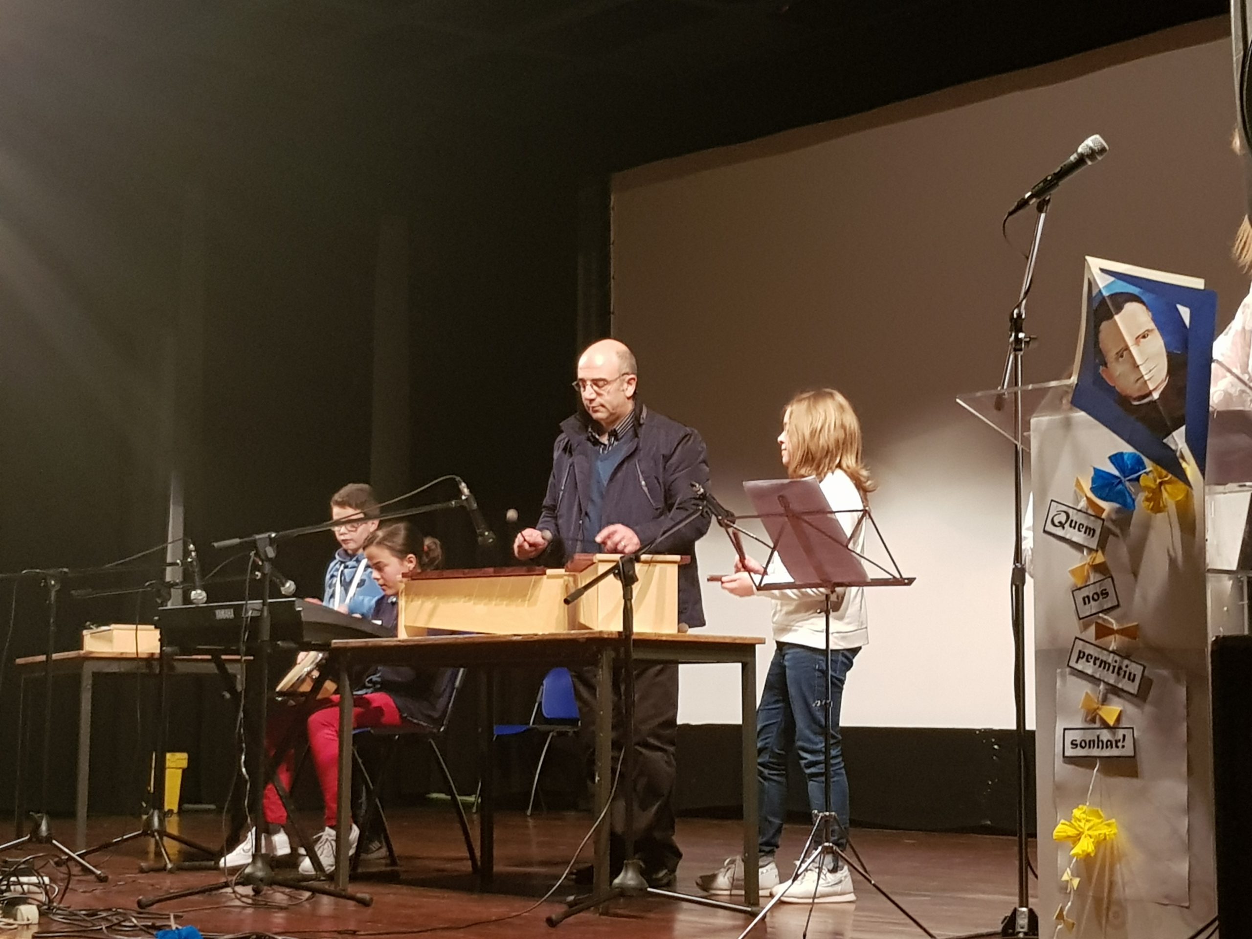 Os dois deram o mote para uma noite cultural e inclusiva, com declamação de poemas e interpretação teatral, intercaladas com atuações musicais e de dança, protagonizadas pelos estudantes dos vários ciclos, professores e funcionários, e muito elogiada pelo público, que esgotou o auditório.