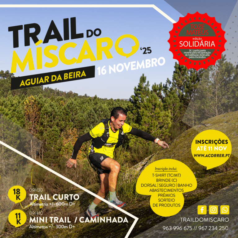 O Trail do Míscaro está de volta a Aguiar da Beira com uma edição solidária que celebra o desporto, a natureza e a entreajuda. A 11ª edição da prova de trail running, corrida e caminhada na natureza, realiza-se no dia 16 de novembro de 2025 e promete reunir centenas de atletas nos trilhos do concelho, proporcionando uma experiência única e emocionante.